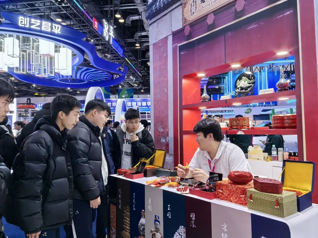 12月14日至15日,由北京市人力资源和社会保障局联合市经信局、市商务局、市总工会等15个市级部门,以及朝阳区等11个区和经济技术开发区共同在国家会议中心开放举办北京市第六届职业技能大赛部分竞赛项目决赛,首次以赛、展、演、会的形式,向社会展示北京产业发展、技术变革、人才培养、奋斗圆梦的技能故事。北京燕京八绝博物馆非遗传承人、工美大师携精美展品、文创作品亮相活动现场,并带来了精彩的非遗技艺展演。
