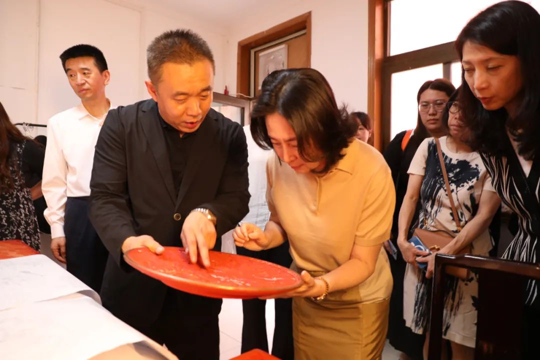 调研首站,代表团走进北京燕京八绝博物馆(朝阳馆),近距离品鉴了燕京八绝从宫廷走向民间的历史脉络以及各工艺的特色。北京工艺美术雕漆大师海燕现场展演雕漆技艺,向代表团展示了宫廷绝技的当代新生。