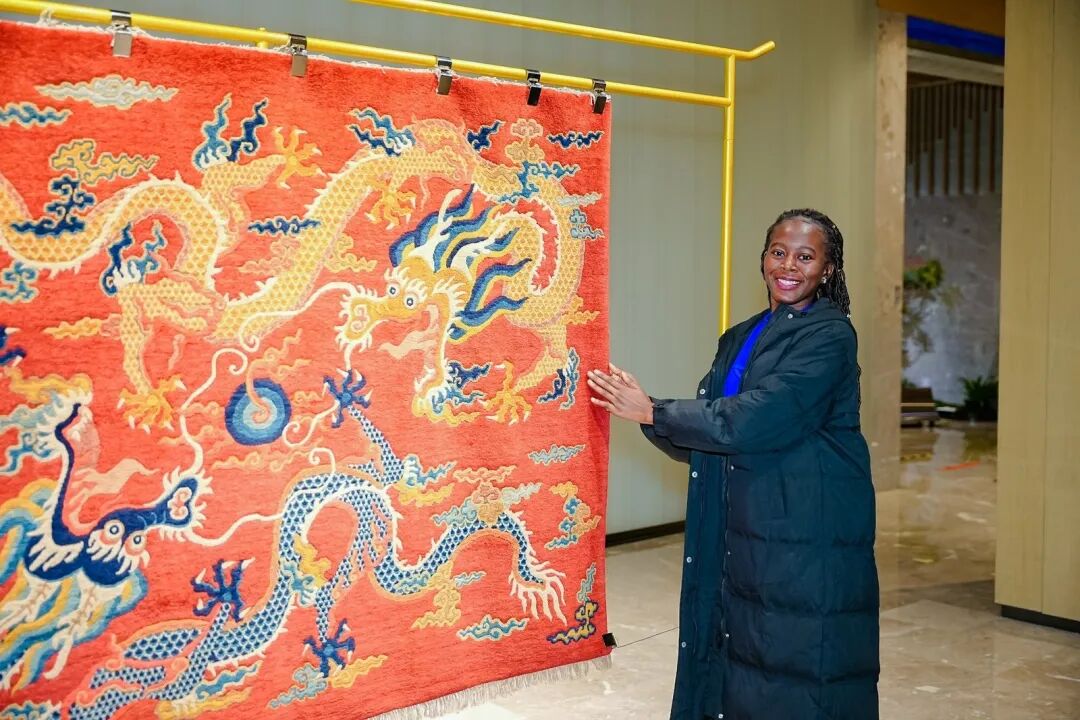 薛江文燕以《燕京八绝宫毯艺术的古来今往》为题与在场来宾们分享。她从北京宫毯的历史、制作技艺与纹样风格出发,生动介绍了宫毯作为宫廷生活的必需品,在皇家礼仪中的独特地位,阐释其蕴含的东方智慧与当代创新实践。同时,融合家族世代传承宫毯技艺等精彩内容,讲述发生在身边的传承故事。她认为,此次文化交流活动正是中塞“铁杆友谊”在人文领域的生动诠释与延伸。