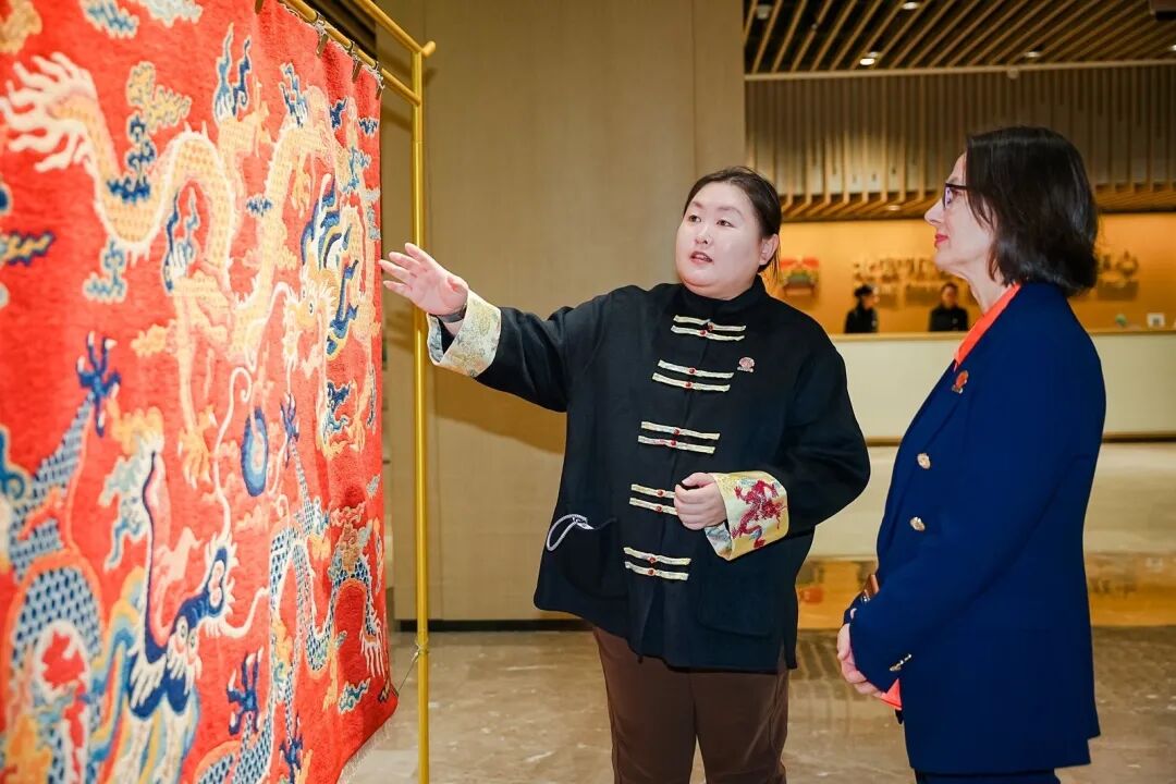 11月20日,“长安雅集|中塞织韵 双毯和鸣”活动在北京市海外文化交流中心文化空间成功举办。活动以中塞友谊70周年为契机,深度聚焦塞尔维亚皮罗特地毯编织技艺和中国北京宫毯织造技艺两项非物质文化遗产,北京塞尔维亚文化中心主任苏达·塔尼亚(Soldat Tatjana),国家级非物质文化遗产宫毯技艺的传承人薛江文燕参加活动。