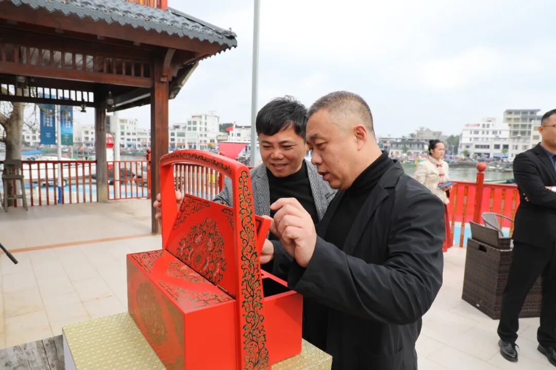 在琼海市更路簿博物馆,王振忠馆长向北京一行介绍了博物馆的特色藏品、以及国家级非物质文化遗产项目《南海航道更路经》的传承保护情况,传统“航海箱”的功能用途等。柏群向更路簿博物馆捐赠了采用金漆镶嵌雕填工艺制作的“航海箱”。随后,双方签署了战略合作框架协议,将共同开展主题文化交流活动及文创品研发等合作。