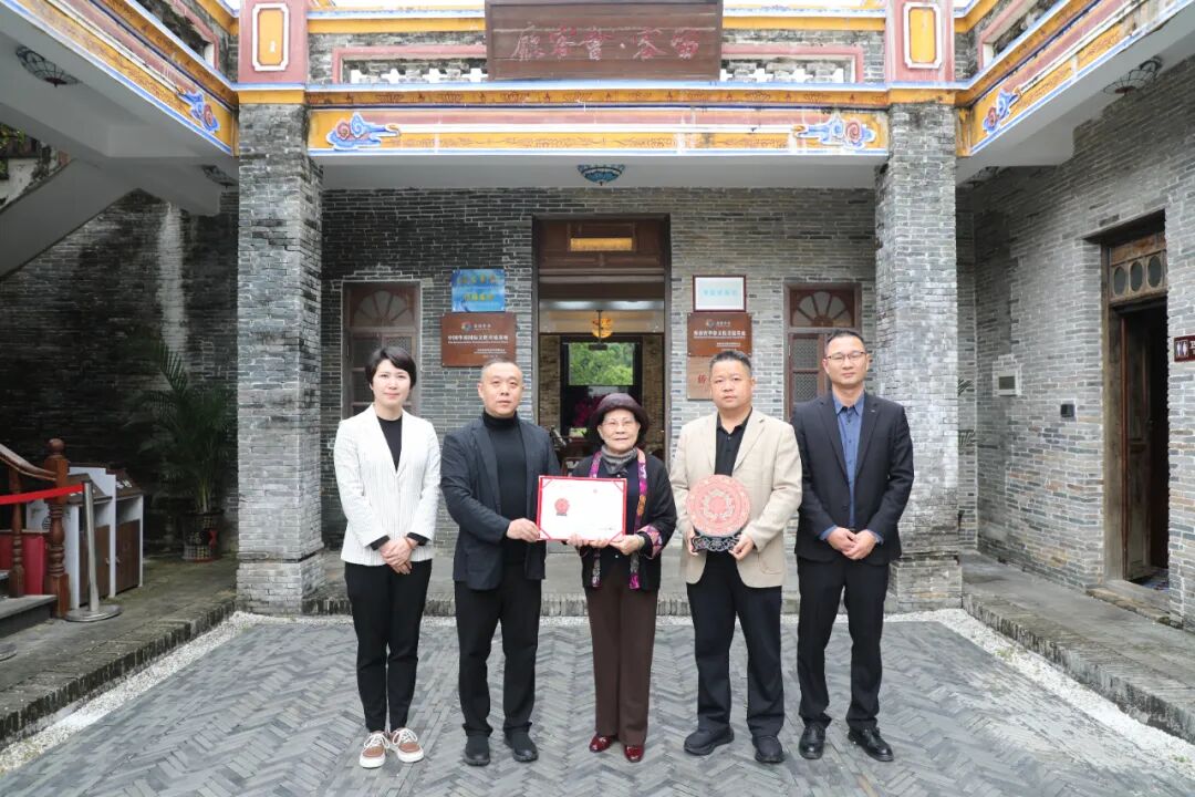 在承载着琼海独特文脉的蔡家宅,蔡家后人—“金牌导游”蔡王普君向北京一行详细讲述了蔡家宅的故事和华侨精神,特别是那副“公道守信千古业,婆言勤俭万年兴”的对联给一行人留下了深刻的印象。交流座谈后,柏群向蔡家宅捐赠承载着“长寿、富贵、康宁、好德、善终”吉祥寓意于一体的金漆镶嵌《五福捧寿》赏盘。