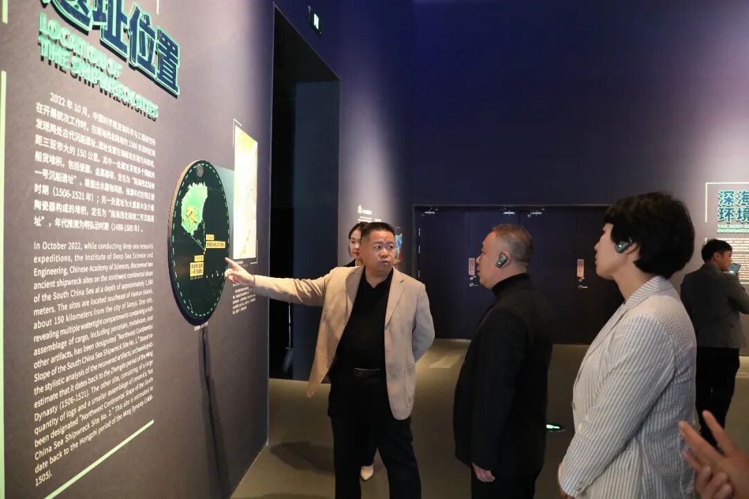 在中国(海南)南海博物馆,辛礼学馆长详细介绍了南海博物馆的馆藏情况及近年来的发展状况,并带领大家参观了“深蓝宝藏—南海西北陆坡一二号沉船考古成果特展”。